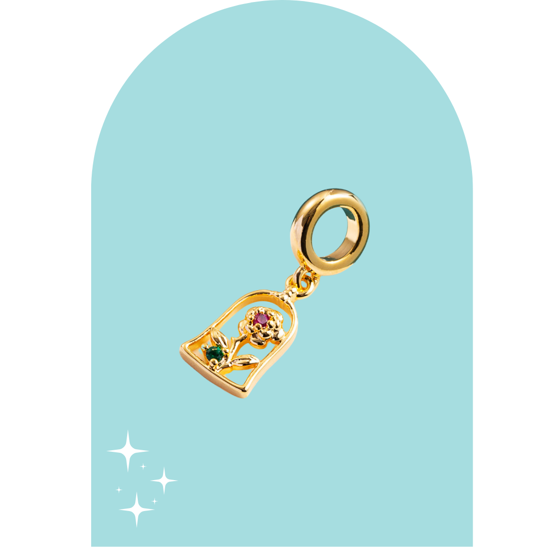 Este charm de rosas de la princesa Belle está hecho de acero inoxidable de alta calidad y resistente. Añade un toque elegante y mágico a tu pulsera o collar. Hecho para durar y lucir increíble.